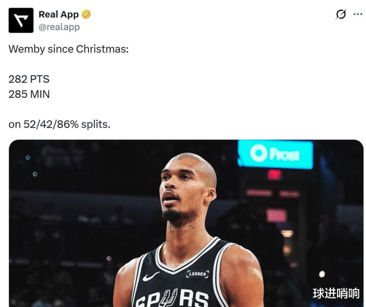 不得不感叹文班亚马恐怖的进攻效率,自从年终大战后,文班亚马一共仅出战285分钟,却拿下282分,几乎一分钟拿一分,并且三项命中率高达52/42/86%,这样的表现也解释了马刺队为何对待文班的伤病问题如此谨慎,一直采取“小伤大养”的方式让其获得更多休息,因为文班的天赋肉眼可见,只要能够长久保持健康,他势必将是NBA下一个十年的绝对门面人物。