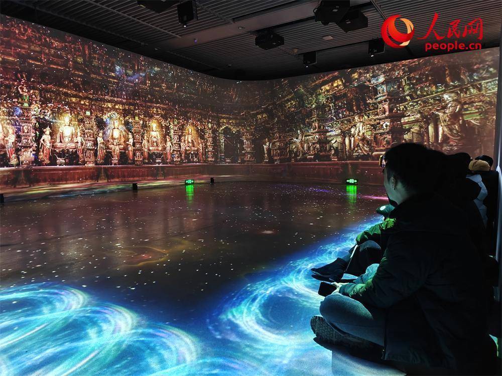 观众正在展厅内欣赏数字小西天悬塑。人民网记者 韦衍行摄