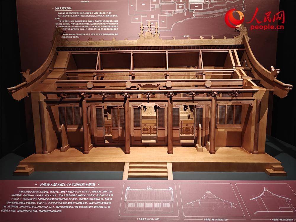 千佛庵大雄宝殿1:10半剖面实木模型。人民网记者 韦衍行摄